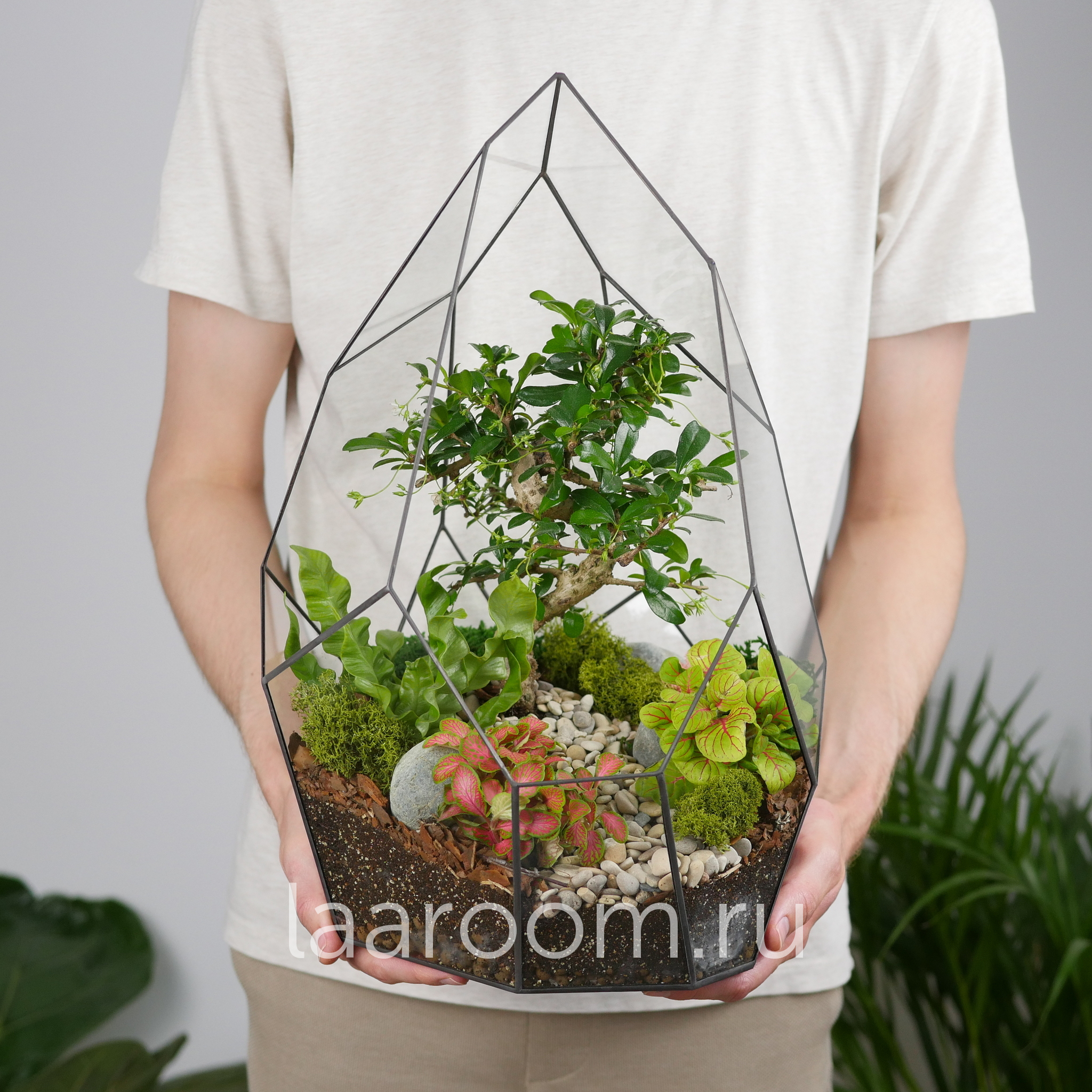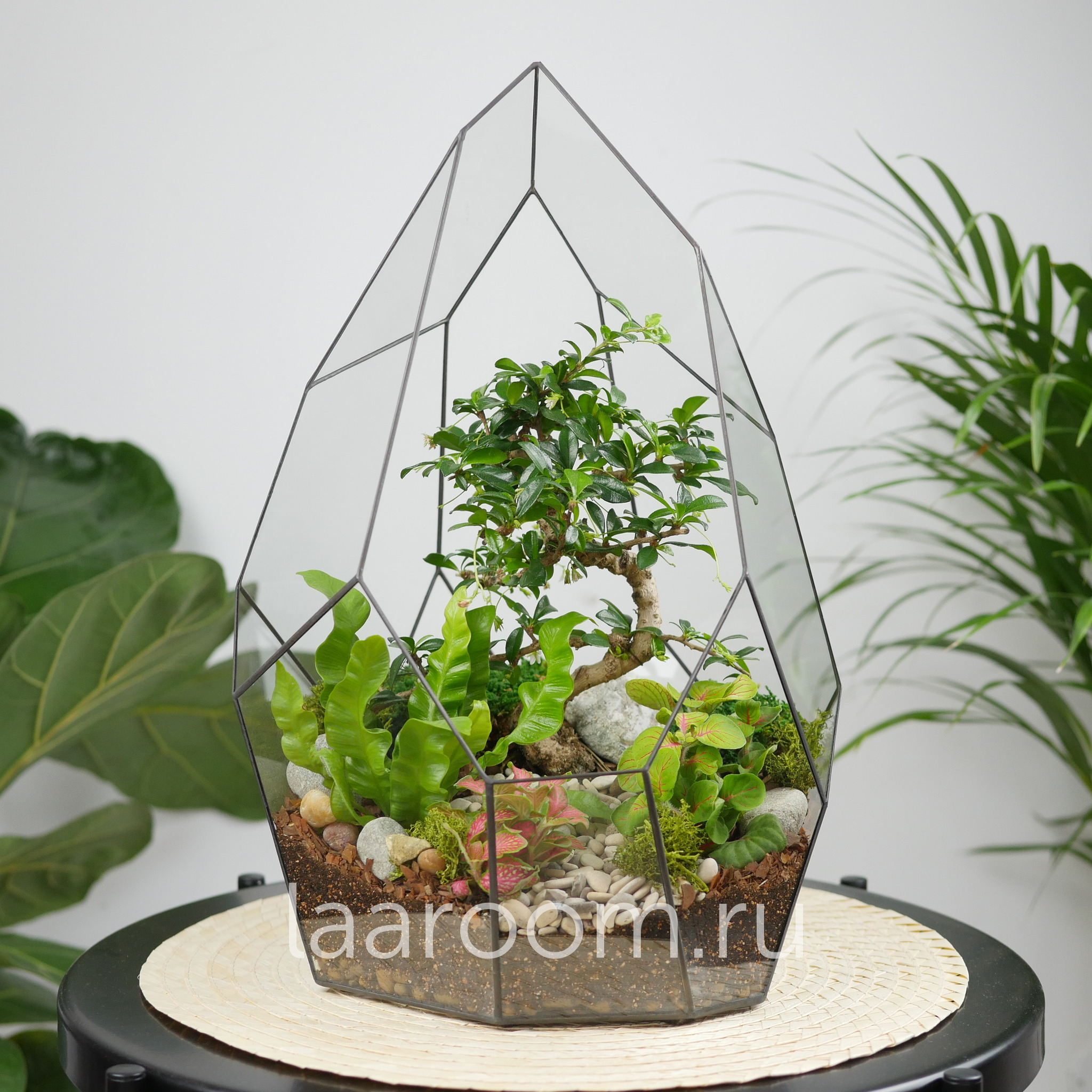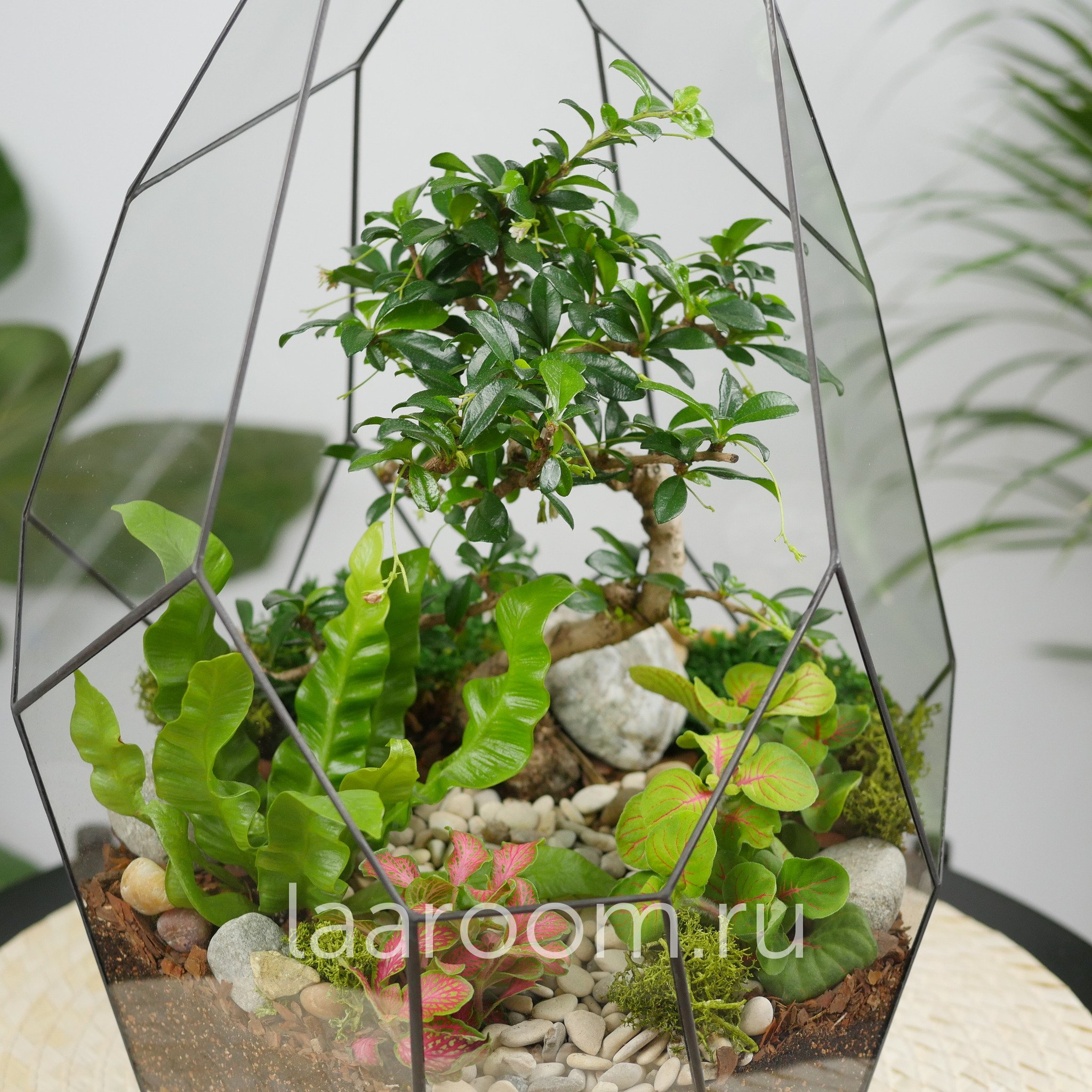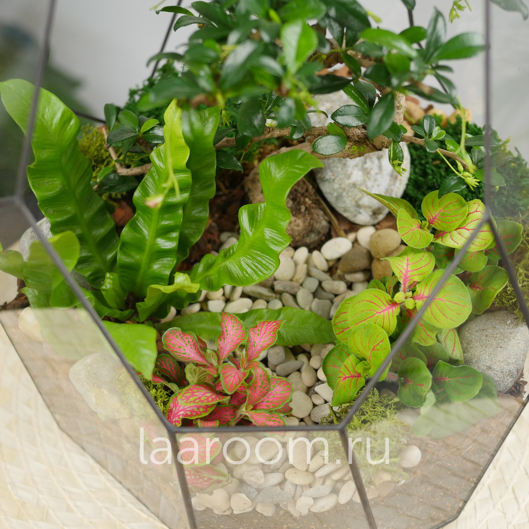 Цена указана за готовый флорариум (стеклянная ваза с растениями и декором), упакован в белую подарочную коробку, прилагается инструкция по уходу.