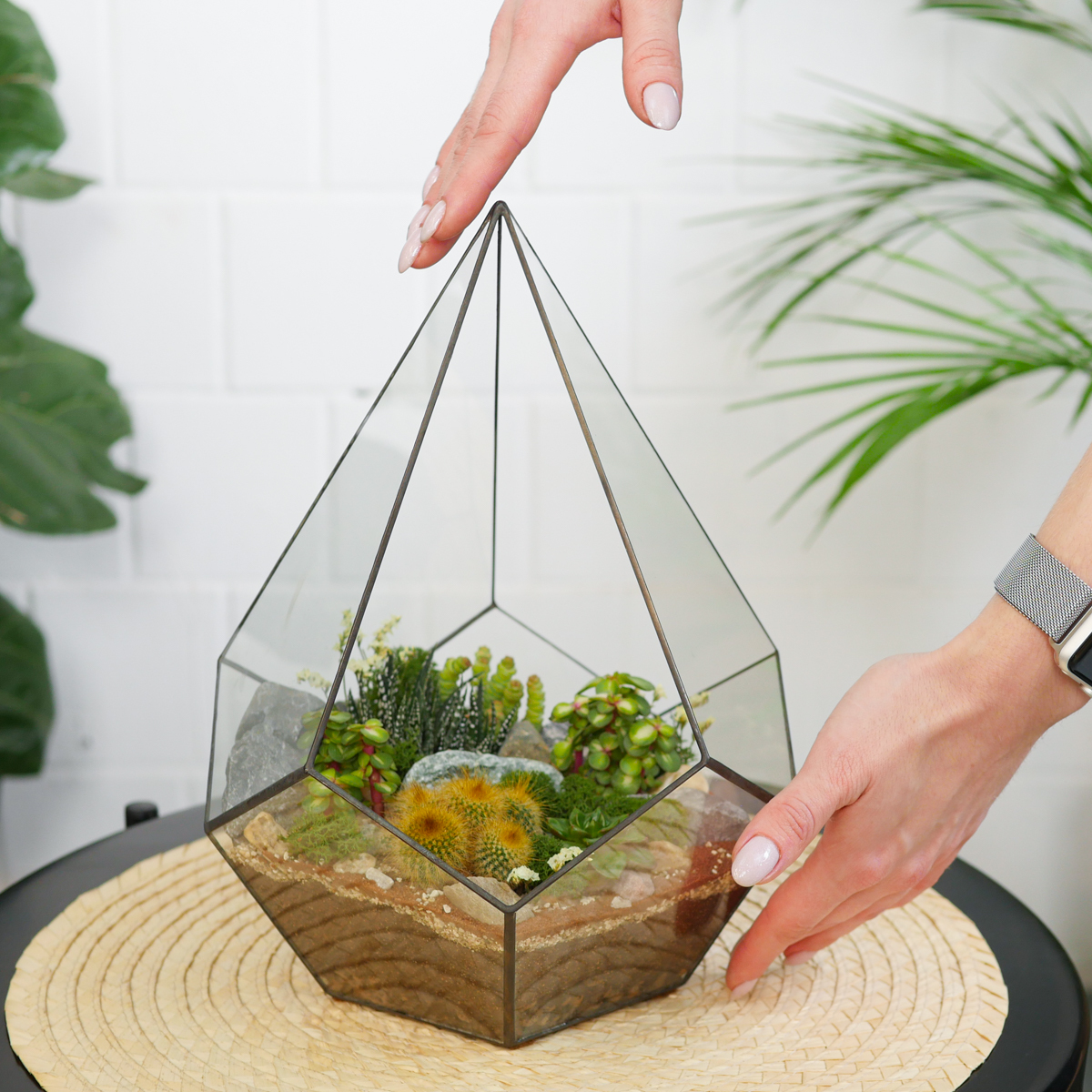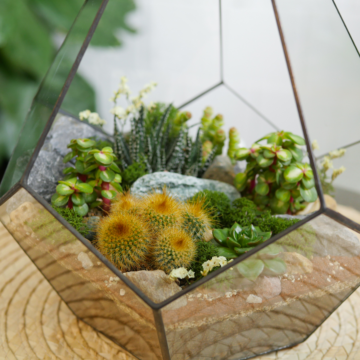 Цена указана за готовый флорариум (стеклянная ваза с растениями и декором), упакован в белую подарочную коробку, прилагается инструкция по уходу